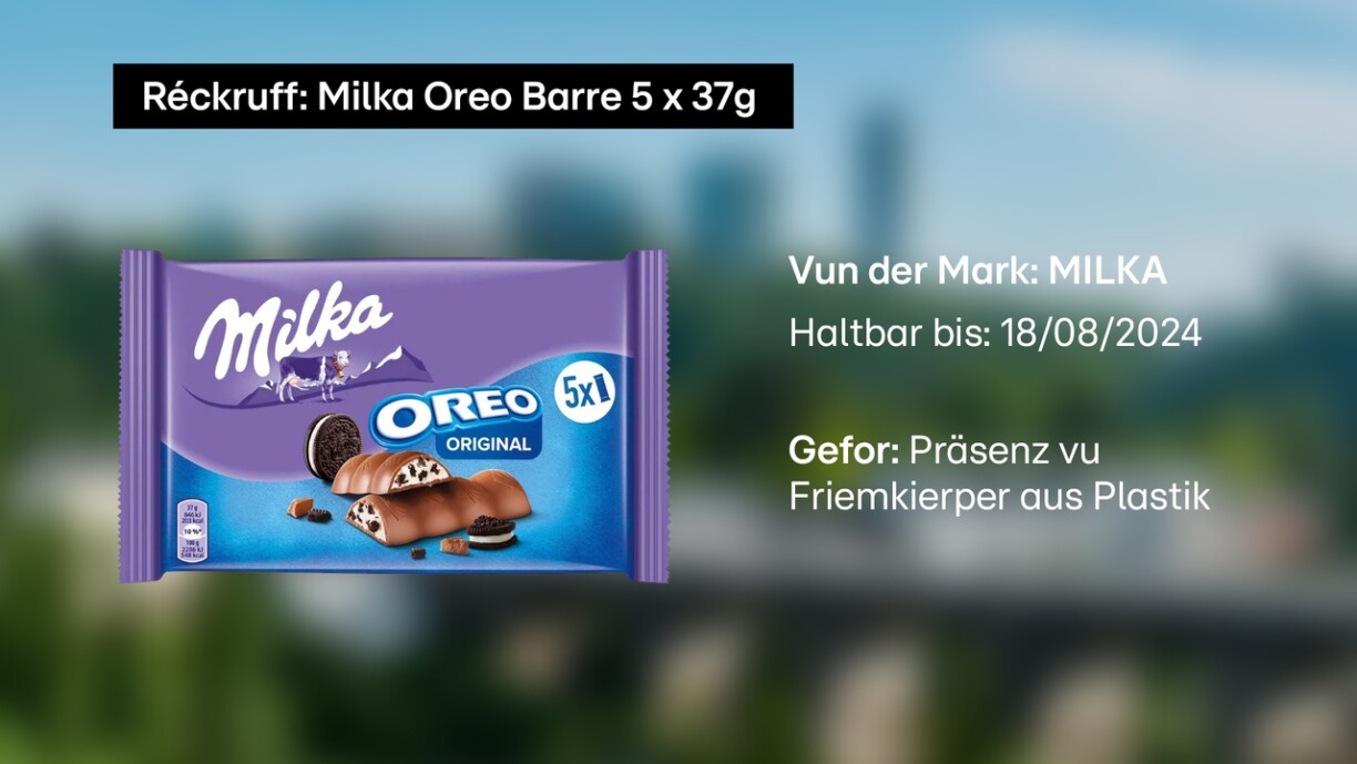 The product concerned is the 185g chocolate bar with Oreo flavour. While often a precaution, the safety alert says the product poses a risk of injury or choking.