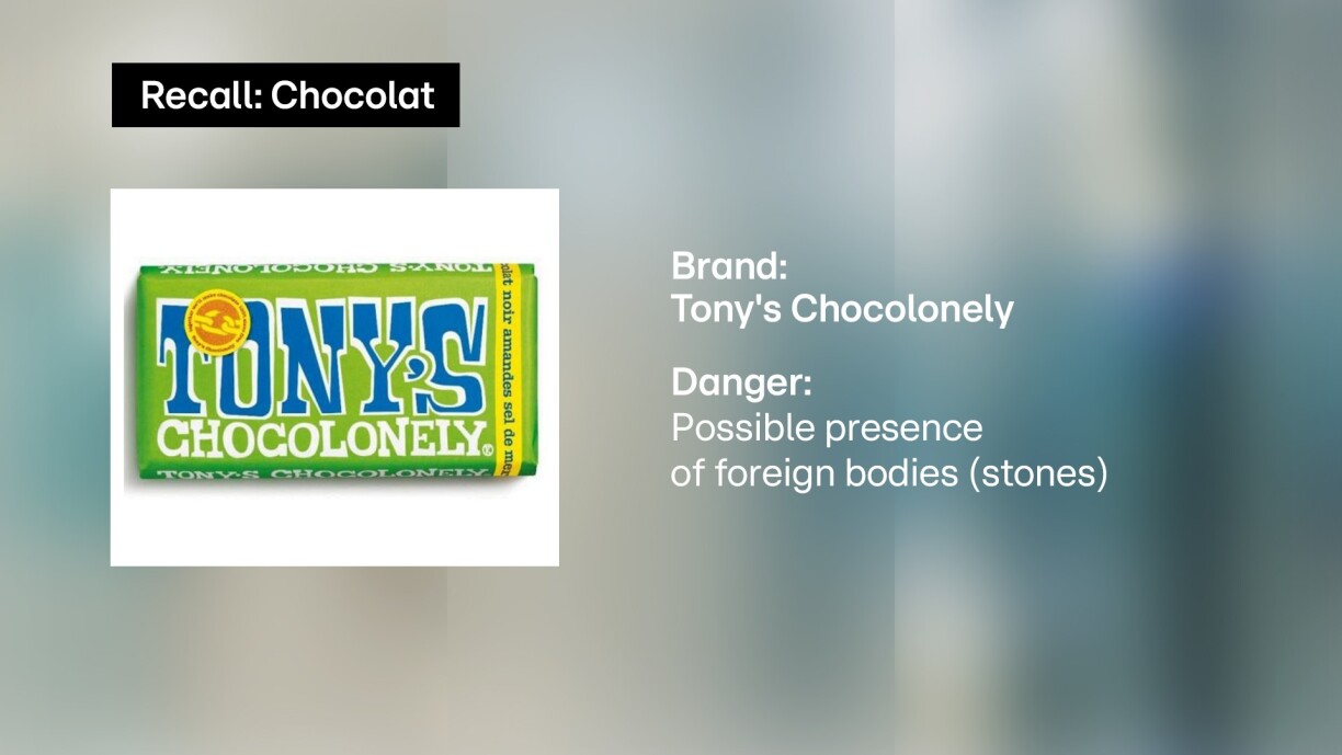 Foreign objects have been discovered in the 180-gram almond and sea salt chocolate bar from the brand Tony’s Chocolonely. The affected batches are 162696, 163150, and 163512.