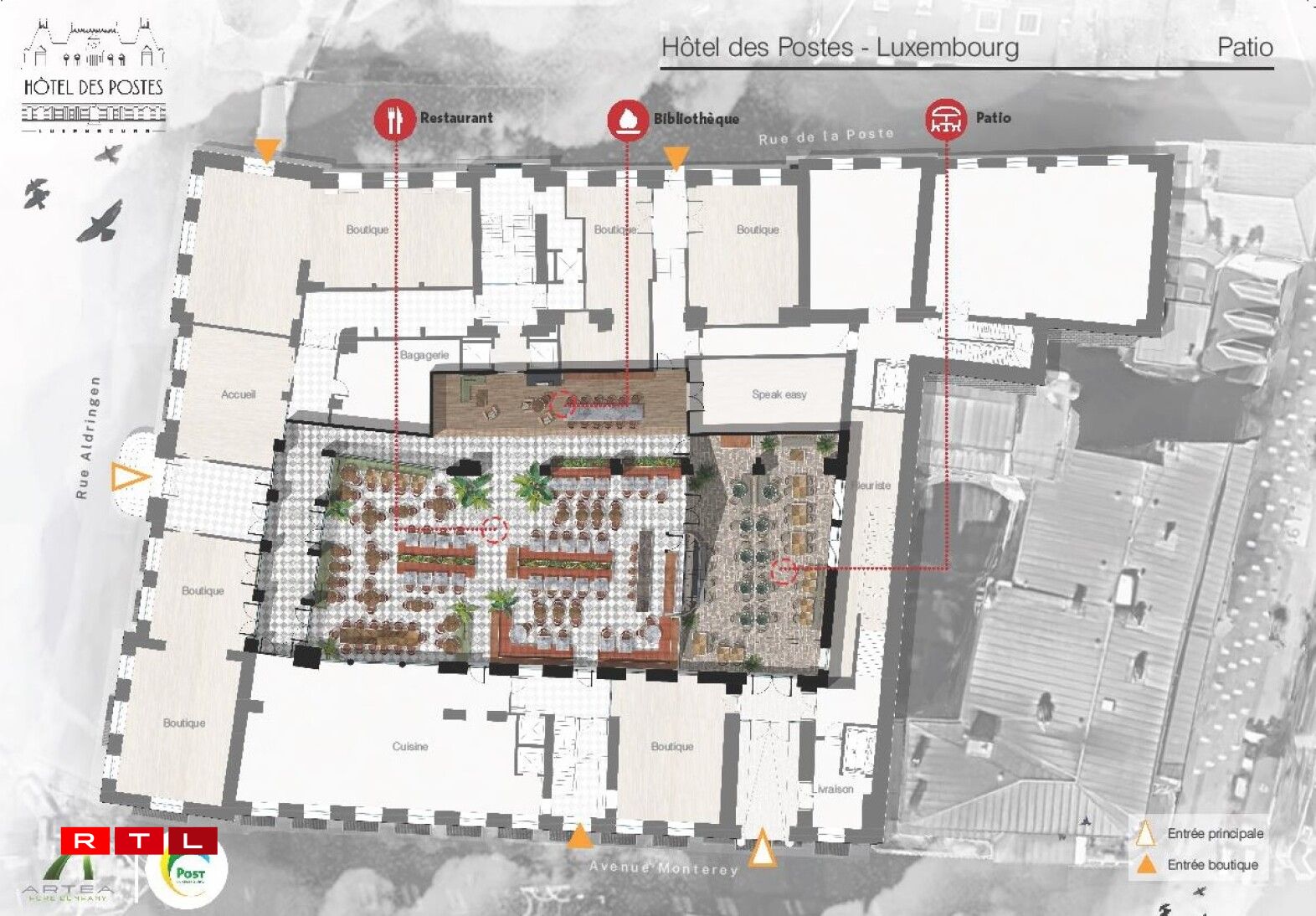 The Director-General of Post Luxembourg, Claude Strasser, stated: “Hôtel des Postes remains the property of Post. Our main goal is to make sure that the iconic building will regain its charm. I want to make sure that it will be an integral part of the public space of the capital and that as many residents and visitors can benefit from this architectural jewel as possible”.