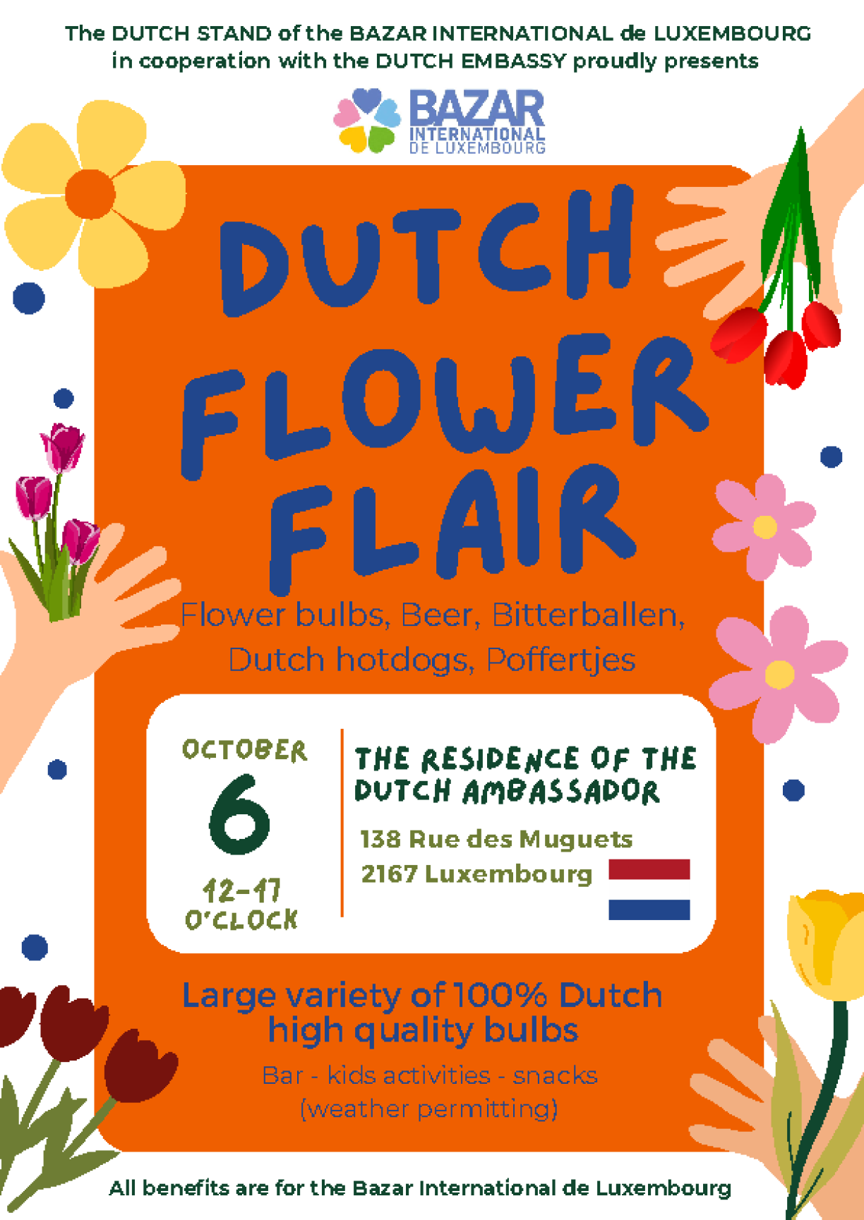 The event is taking place at the residence of the Dutch ambassador to Luxembourg, 138 Rue des Muguets, 2167 Luxembourg.
