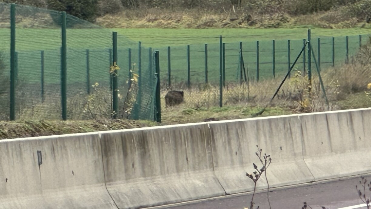 Wëllschwäin beim Rouscht op der A7, Autobunn war gespaart (23.11.2018)