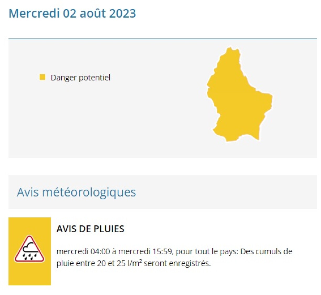 The forecast indicated a spell of substantial rain, with cumulative rainfall reaching up to 25 litres/m². The yellow alert was in effect from 7am to 3pm.