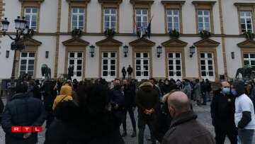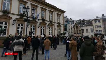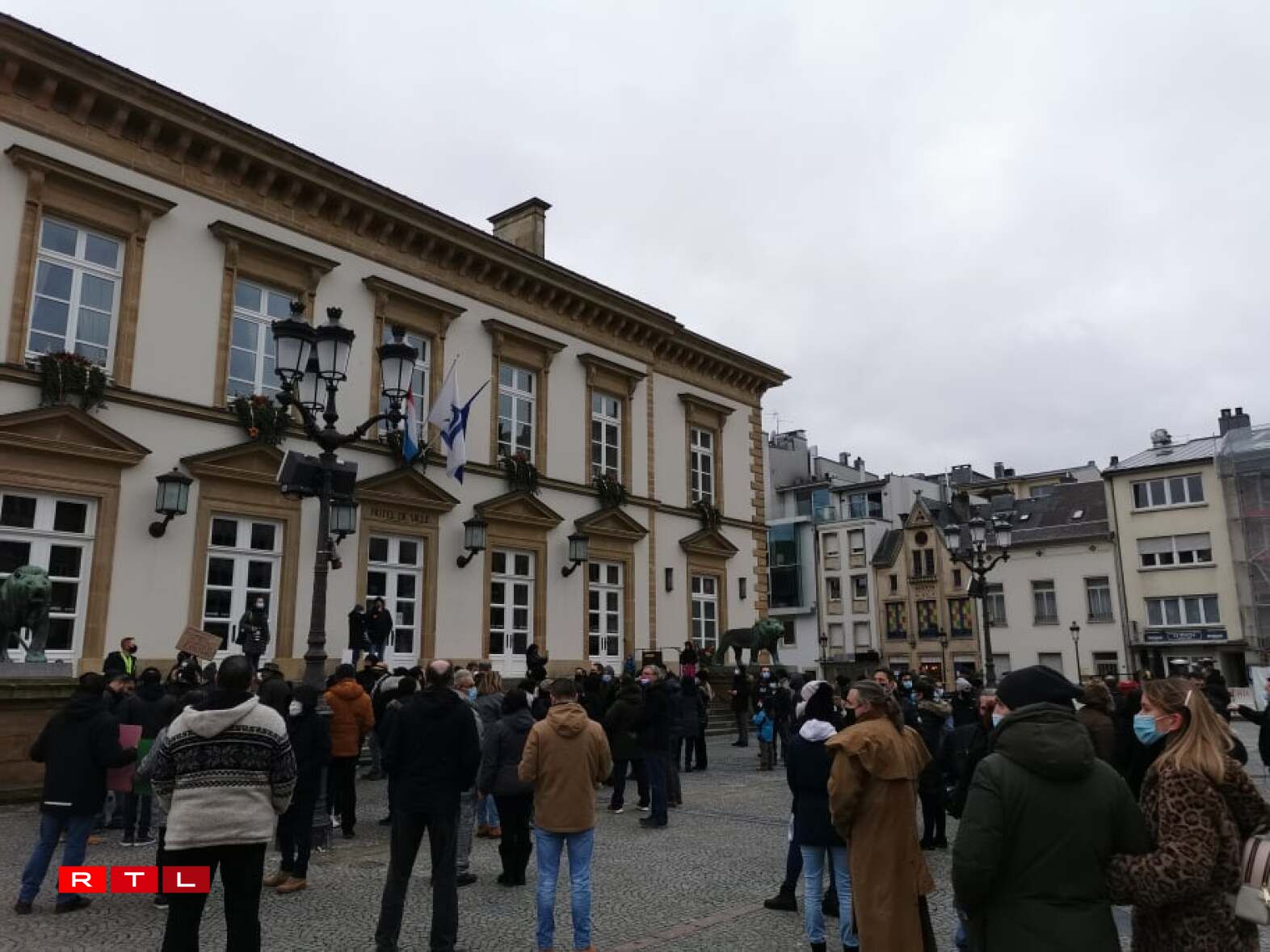 Demonstrators marched through the capital and protested in front of the city hall on Place Guillaume II.