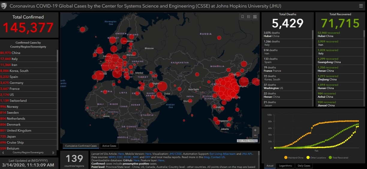 The most well known map is by Johns Hopkins University, listing daily cases of the coronavirus around the world.