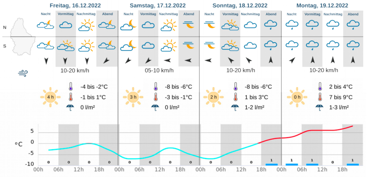 Temperatures are hovering around -5°C on Wednesday morning, expected to climb ever so slightly to -2°C in the late afternoon and early evening, weather agency Meteolux reports.