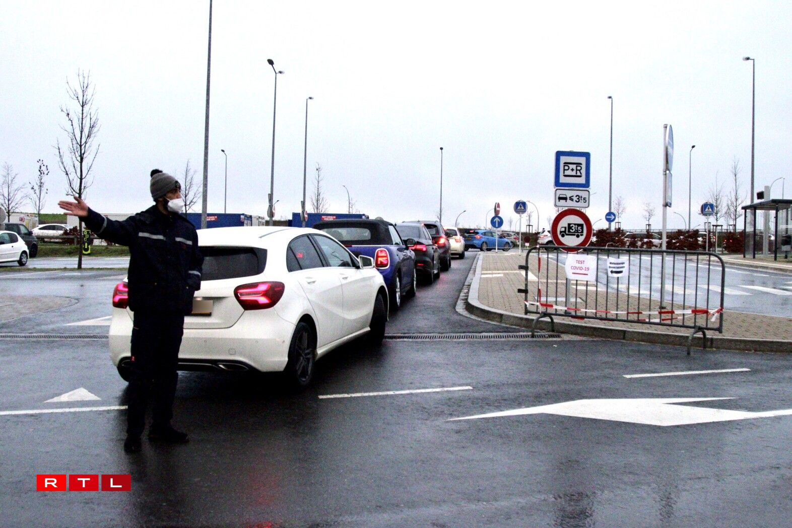 Le P&R de Junglinster saturé dès ce lundi matin aux abords de la station de tests covd-19.