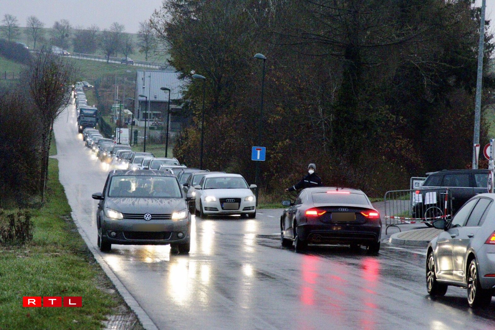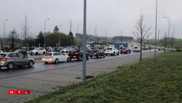 Laang Schlaang beim Testzenter suergt fir Stau