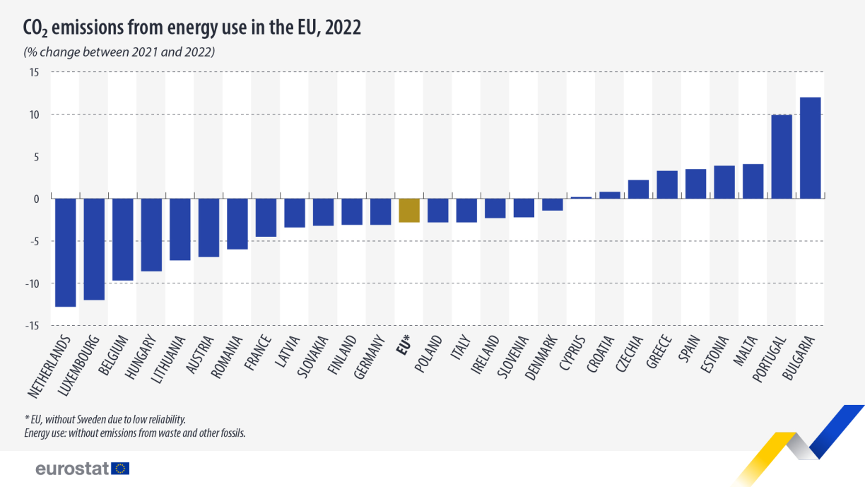 In total, 17 EU nations succeeded in reducing their CO2 emissions from territorial energy use in 2022.