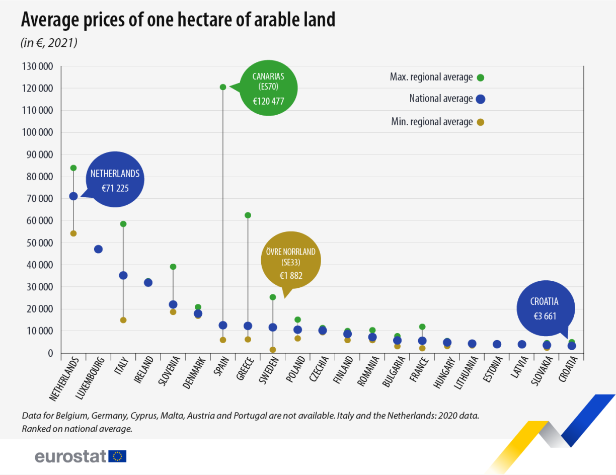 In most EU regions, buying arable land was considered more expensive than buying permanent grassland.