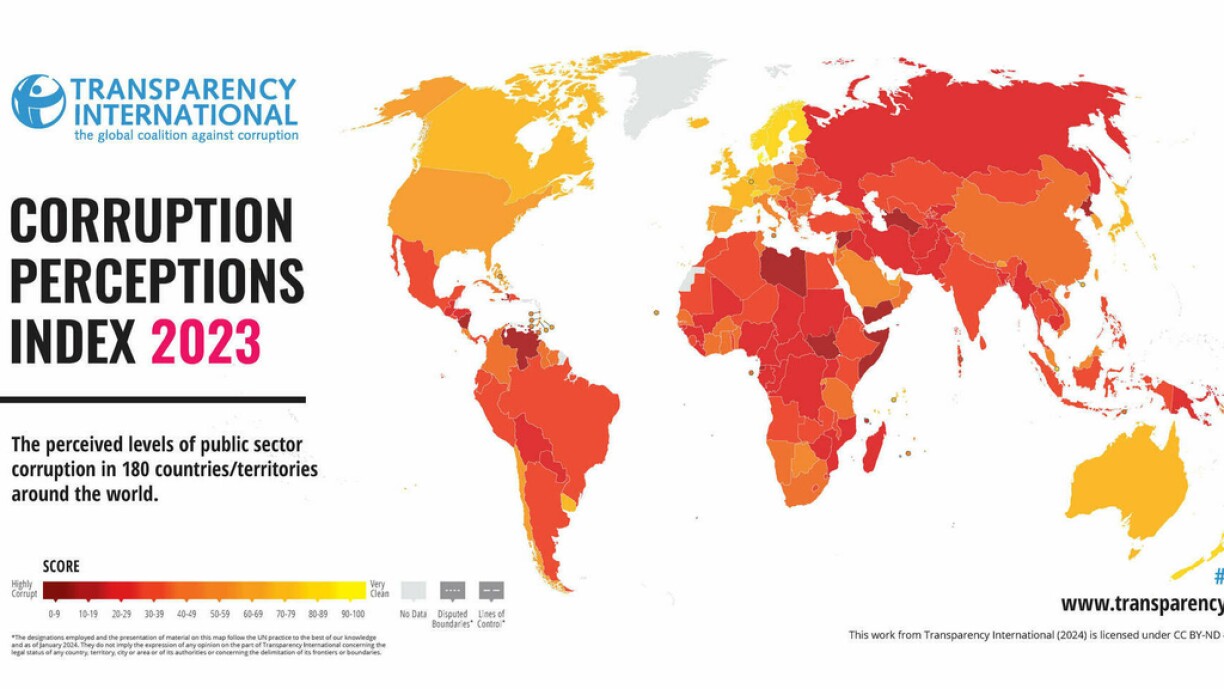 The index, which monitors 180 countries, measures perceived corruption on a scale of 0 to 100. The lower the score, the greater the level of perceived corruption in the public sector.