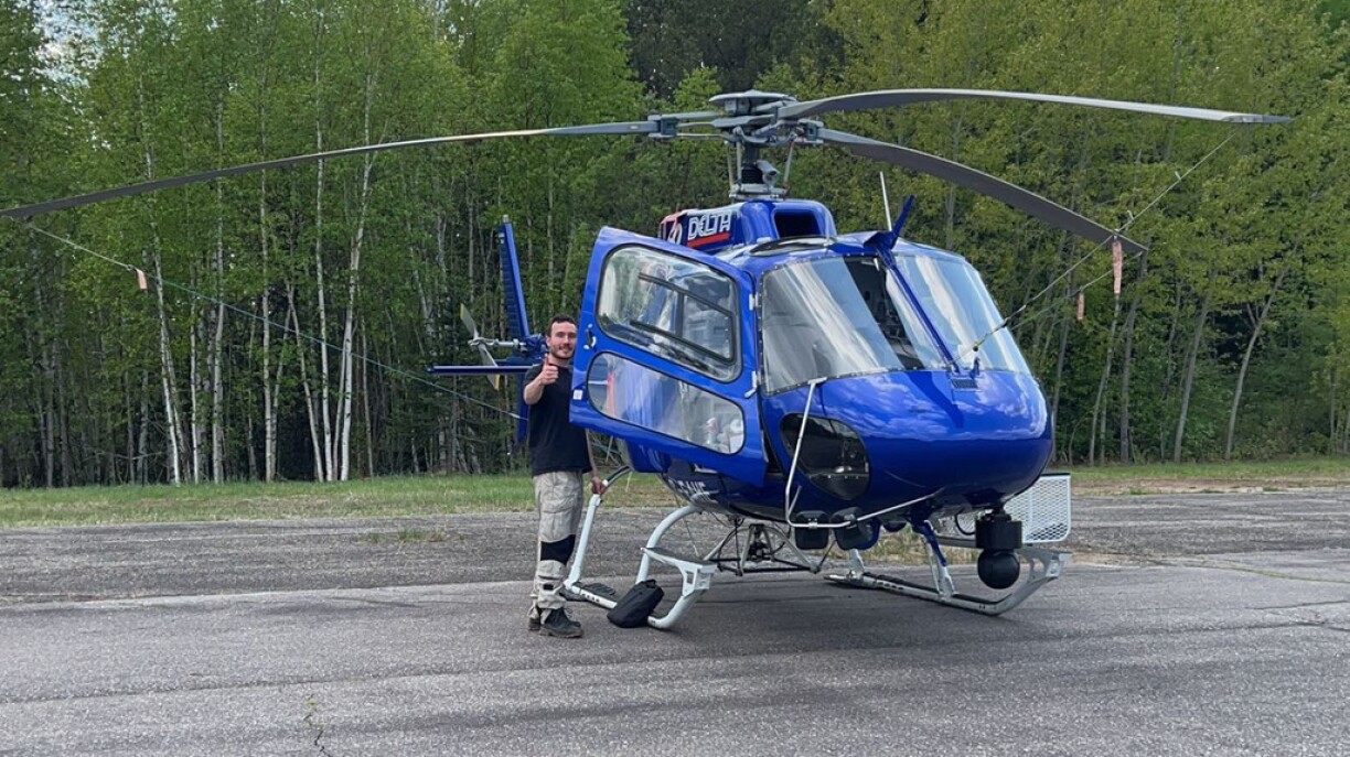 Wickler, who trained in Quebec and now has four years of experience as a commercial helicopter pilot in Canada, is currently based in Kenora, western Ontario. In recent shifts, he has been flying missions in Saskatchewan using what is known as a ‘Bambi bucket’ – a large water container suspended beneath the helicopter, used to scoop and drop water onto fires.
