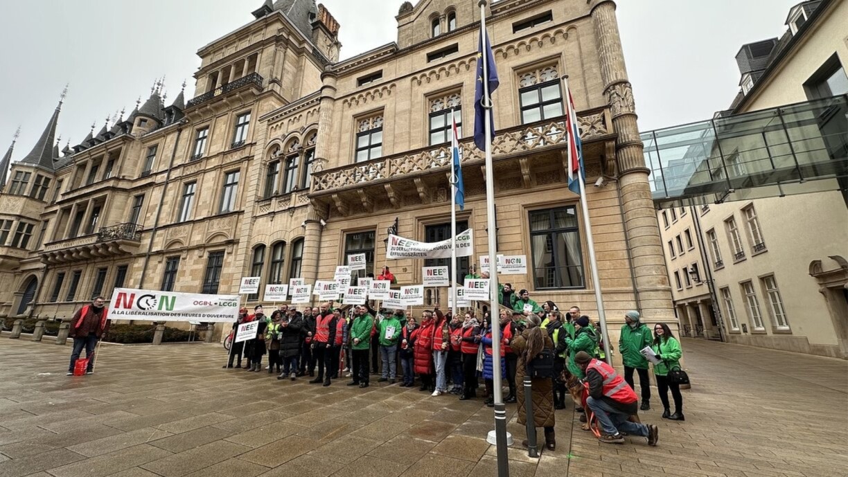 Sending a message – On Wednesday, members of the Independent Luxembourg Trade Union Confederation (OGBL) and the Luxembourg Confederation of Christian Trade Unions (LCGB) gathered outside the Chamber of Deputies to protest against the government’s proposed liberalisation of shop opening hours. The demonstration, attended by around 60 participants, mainly retail staff representatives, aimed to send a clear message to the Chamber’s labour and economy commissions, who were meeting with ministers to discuss the changes.