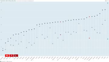 The OECD’s data set detailed that 51.4% of Luxembourg’s population between the ages of 25 and 34 proceed on to third-level education, defined as having received the highest level of education such as advanced research or high skill professions.