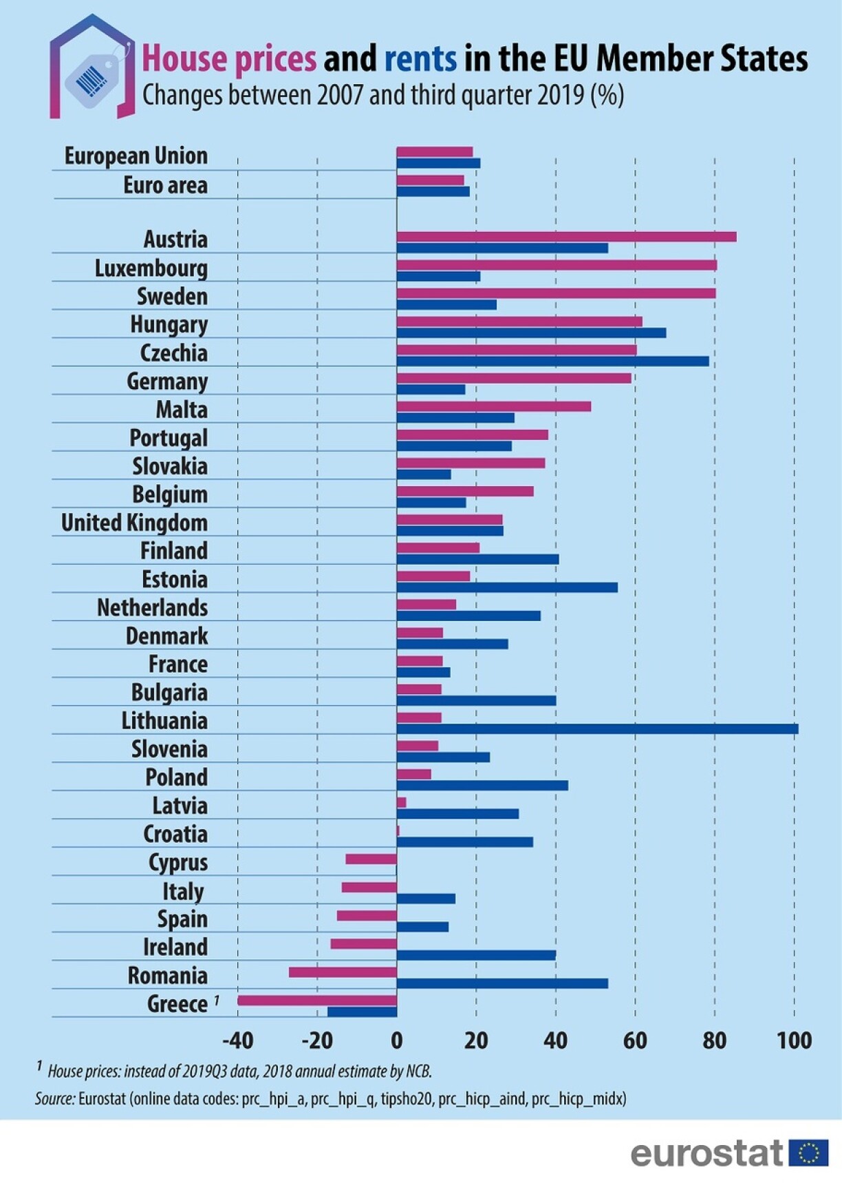 Eurostat: Since 2007 rents up by 21%, house prices by 19%