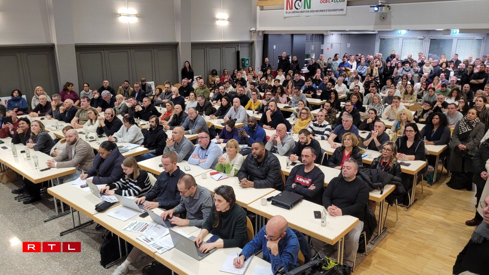 Following a demonstration on Wednesday in front of the Chamber of Deputies, the Independent Luxembourg Trade Union Confederation (OGBL) and the Luxembourg Confederation of Christian Trade Unions (LCGB) joined forces again on Thursday at the Chamber of Employees in Bonnevoie. The unions are intensifying their campaign against the proposed liberalisation of retail sector opening hours.