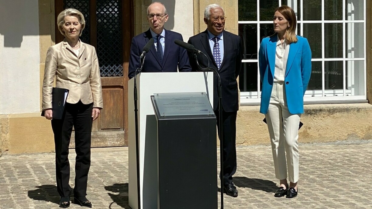 European Commission President Ursula von der Leyen visited Luxembourg on Europe Day to commemorate the 75th anniversary of the Schuman Plan. The visit followed a morning meeting with new German Chancellor Friedrich Merz.