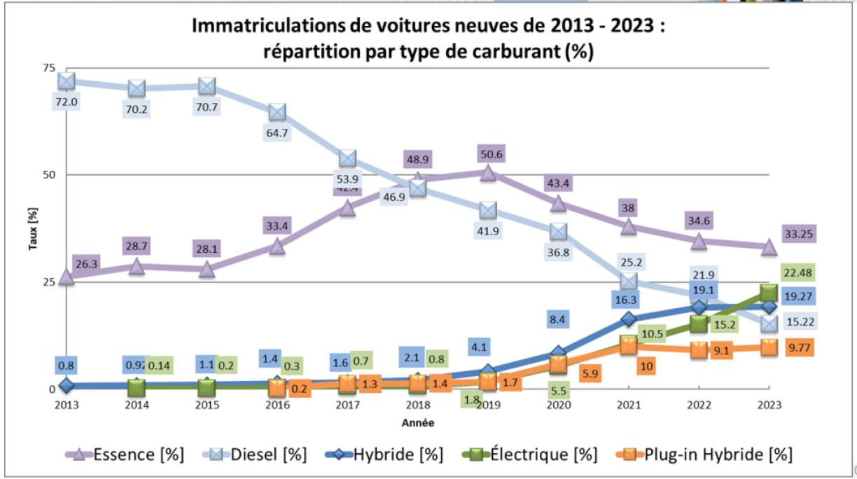 Electric vehicles now represent 22.5% of registrations in Luxembourg. Mersch explains that this increase is attributed to the number of company cars, which have boosted the overall figures.