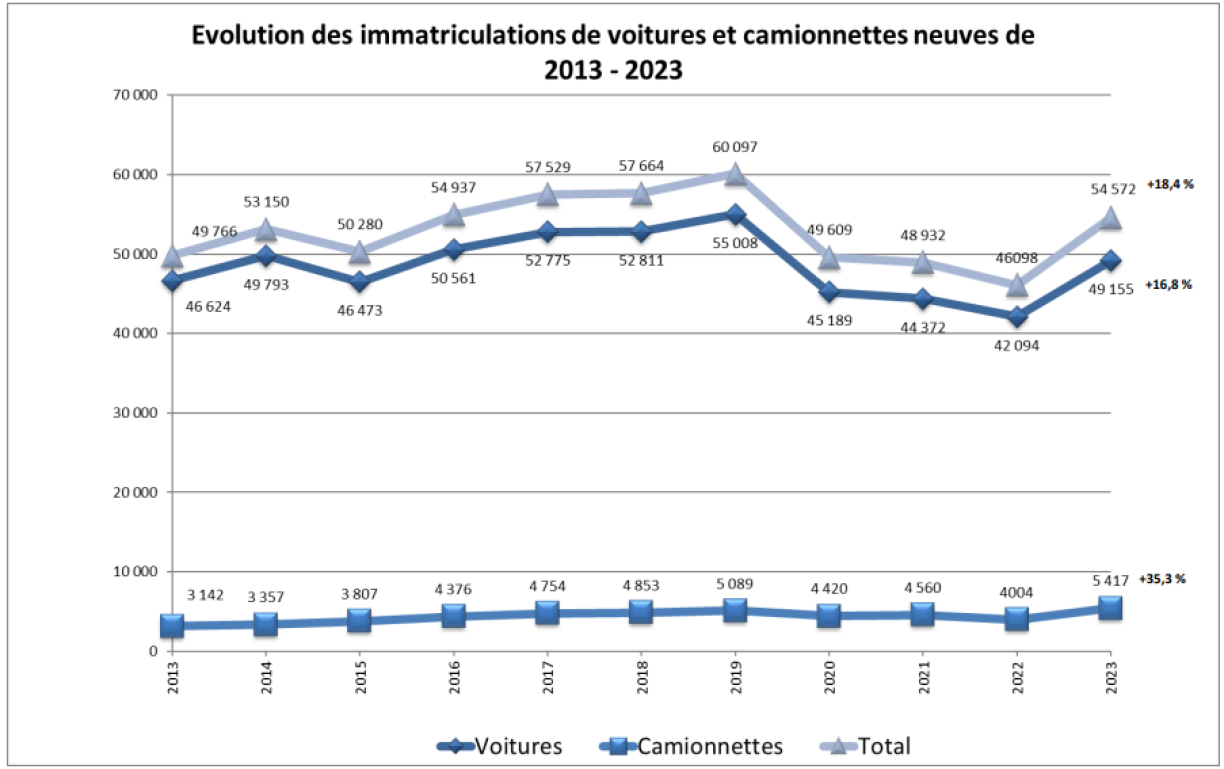 According to data from the SNCA, 49,155 vehicles were registered in 2023 - 7,061 more units compared to 2022. “There are more registrations than the volume of sales would indicate,” says Marc Devillet, vice-president of Fedamo. “This is because we’ve been waiting for production to catch up after it fell behind on a global scale, even if this means that a number of cars sold in 2023 are still awaiting delivery in 2024.”