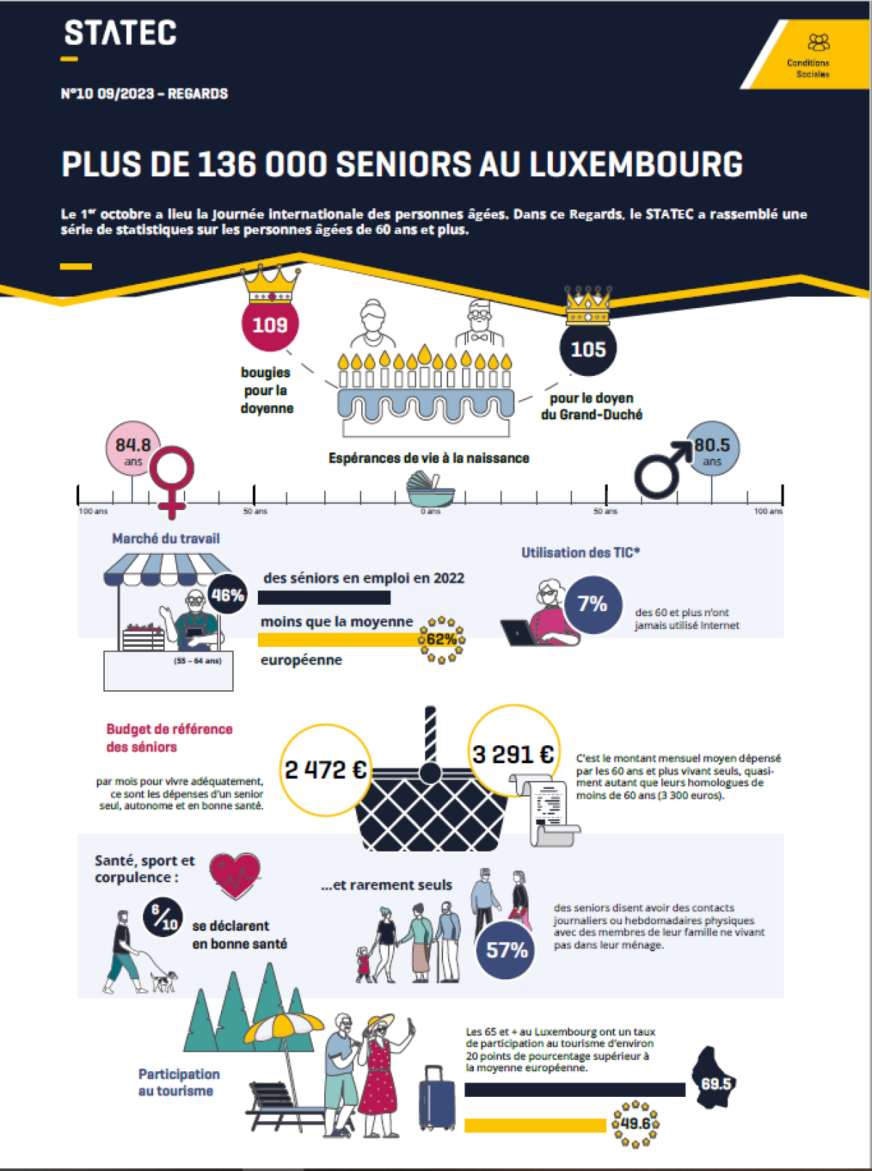 Not all of these are pensioners: around 46% of people aged between 55 and 64 years old still go to work in the Grand Duchy. However, this falls below the European average of 62%.