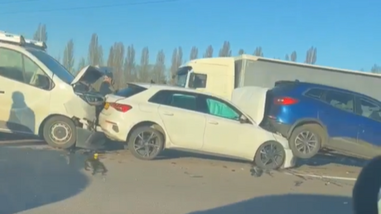 First images show the violence of the collision, with at least one van among the 12 vehicles. The circumstances of the pile-up at the height of the morning rush hour – and any potential injuries – are not yet known.