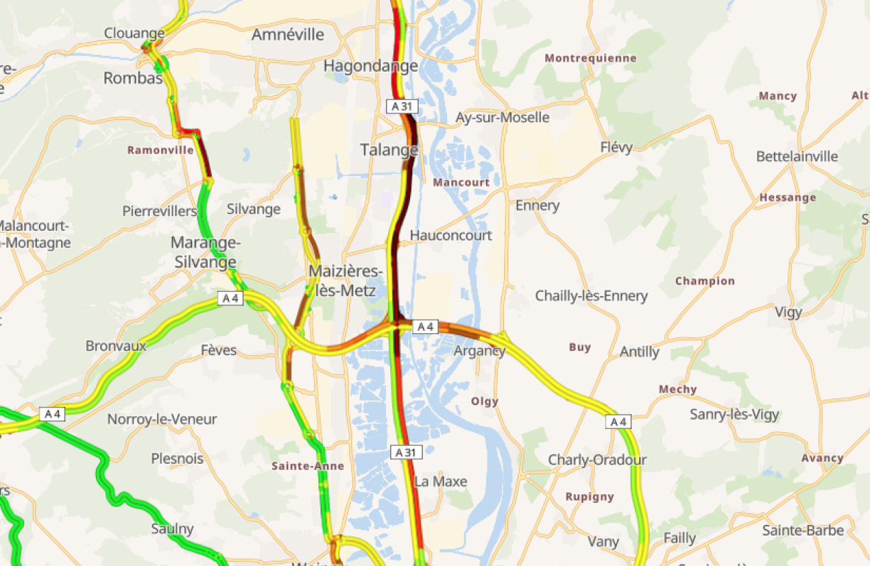 A pile-up involving 12 vehicles occurred near Talange on the A31 towards Luxembourg shortly before 8am on Tuesday morning. Congestion immediately started after the accident and began stretching for several kilometres affecting the A4 as well.