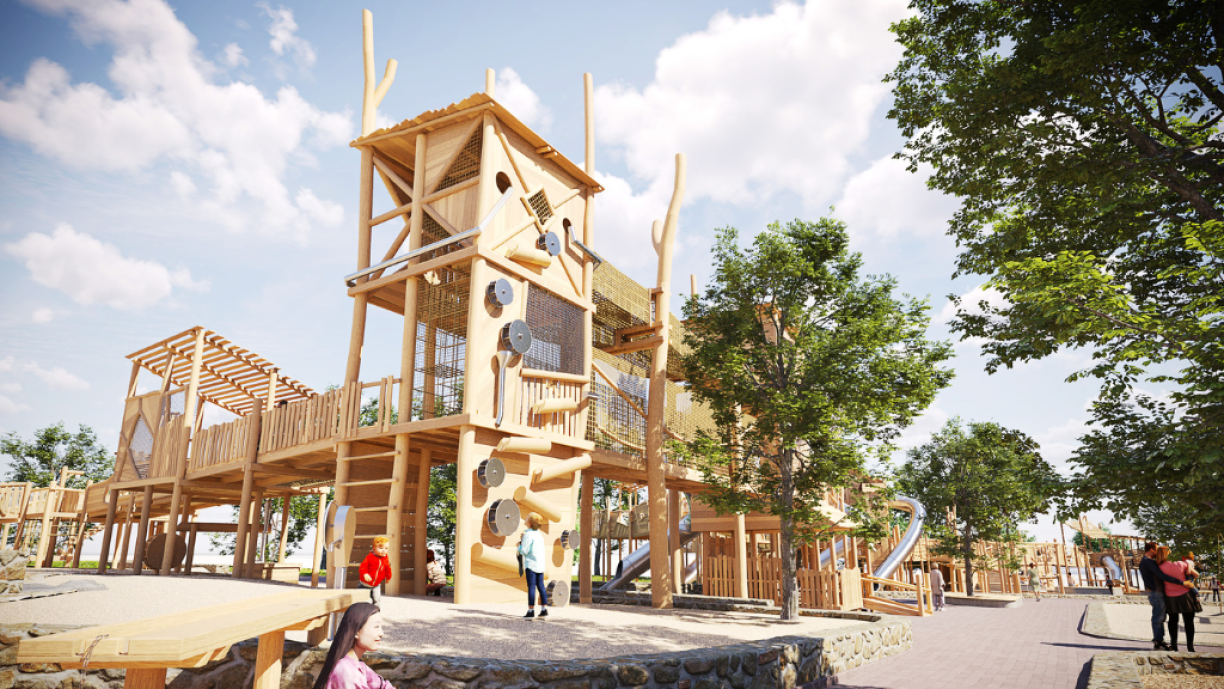 At the heart of the new playground will be two towers representing a hydroelectric power station and a wind turbine. Connected by accessible walkways and rope tunnels, they offer climbing challenges and sensory games while introducing children to renewable energy in an engaging way.