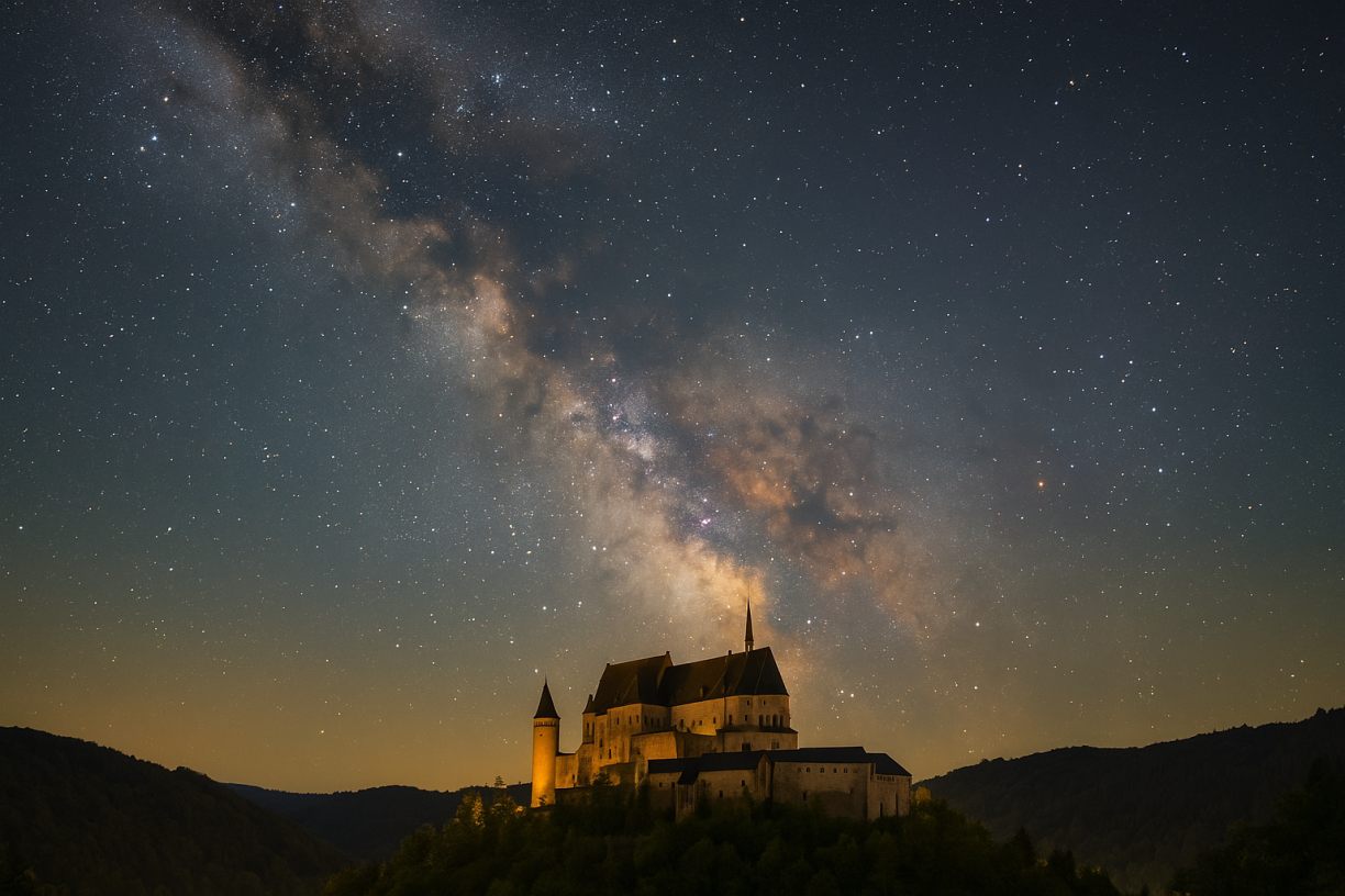 In the north, the Our Natural Park offers some of the darkest skies in the country. Villages such as Heinerscheid, Bivels, and Clervaux provide excellent vantage points, as well as opportunities for striking astrophotography. The Haute-Sûre Natural Park is another strong option, particularly along the lake’s shoreline, where clear southern horizons open up unobstructed views of the galactic core.