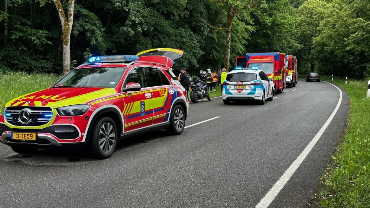 Emergency services, including firefighters from Wiltz, Ale Besch, and Esch-sur-Sûre, responded to the scene alongside the SAMU medical team and police. The incident caused partial traffic disruptions along the route.