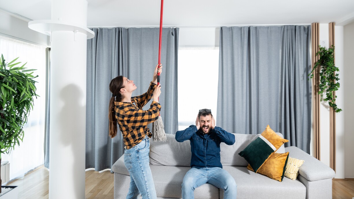 Robert: “My neighbours drag their furniture across the floor every day when they get up. It’s like they’re moving house. They play with a ball that they bounce on the floor, which echoes in my flat. They play the trumpet every day. They run.”