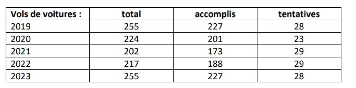 Apart from the fall in number of thefts during the Covid-19 pandemic, the Ministry did not register a significant change to the amount of car theft over the last four years. What he did note, however, is that the number of attempted thefts remains close to thirty every year.