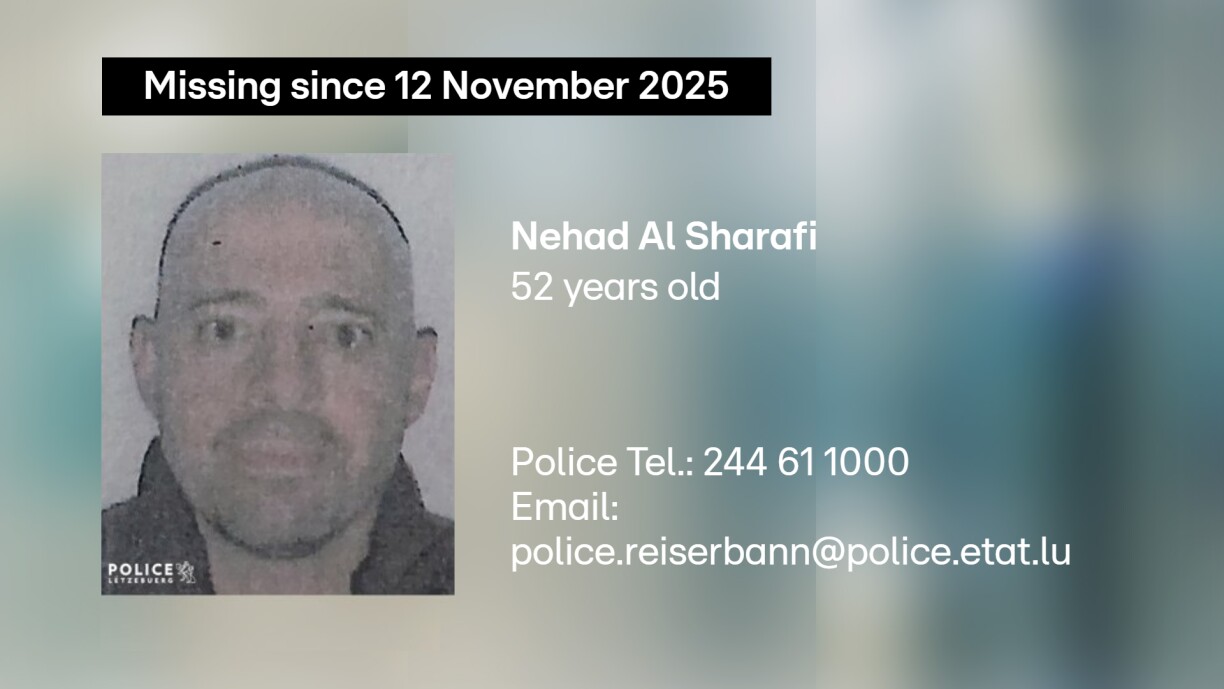 Anyone with information on his whereabouts is encouraged to contact Réiserbann police on 244 61 1000 or via email at “police.reiserbann@police.etat.lu”.
