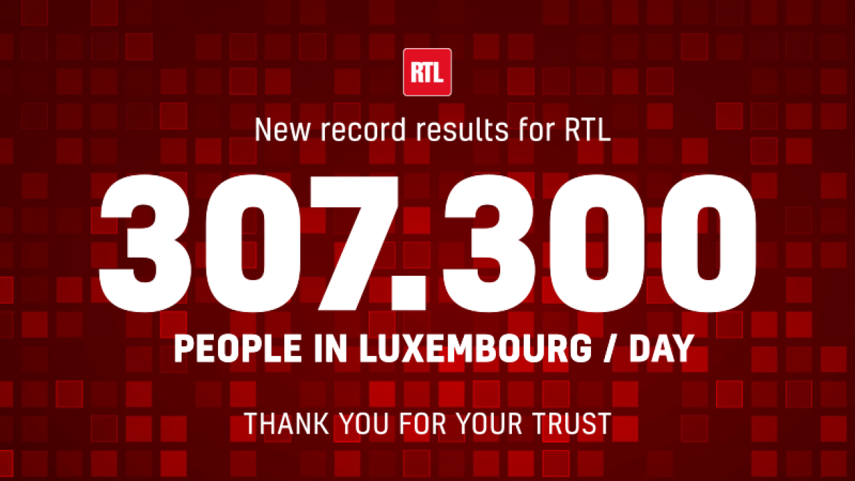 RTL is the country’s leading media brand: every day, RTL (Radio, TV and digital platforms) reaches 307,300 residents. A new record for RTL!