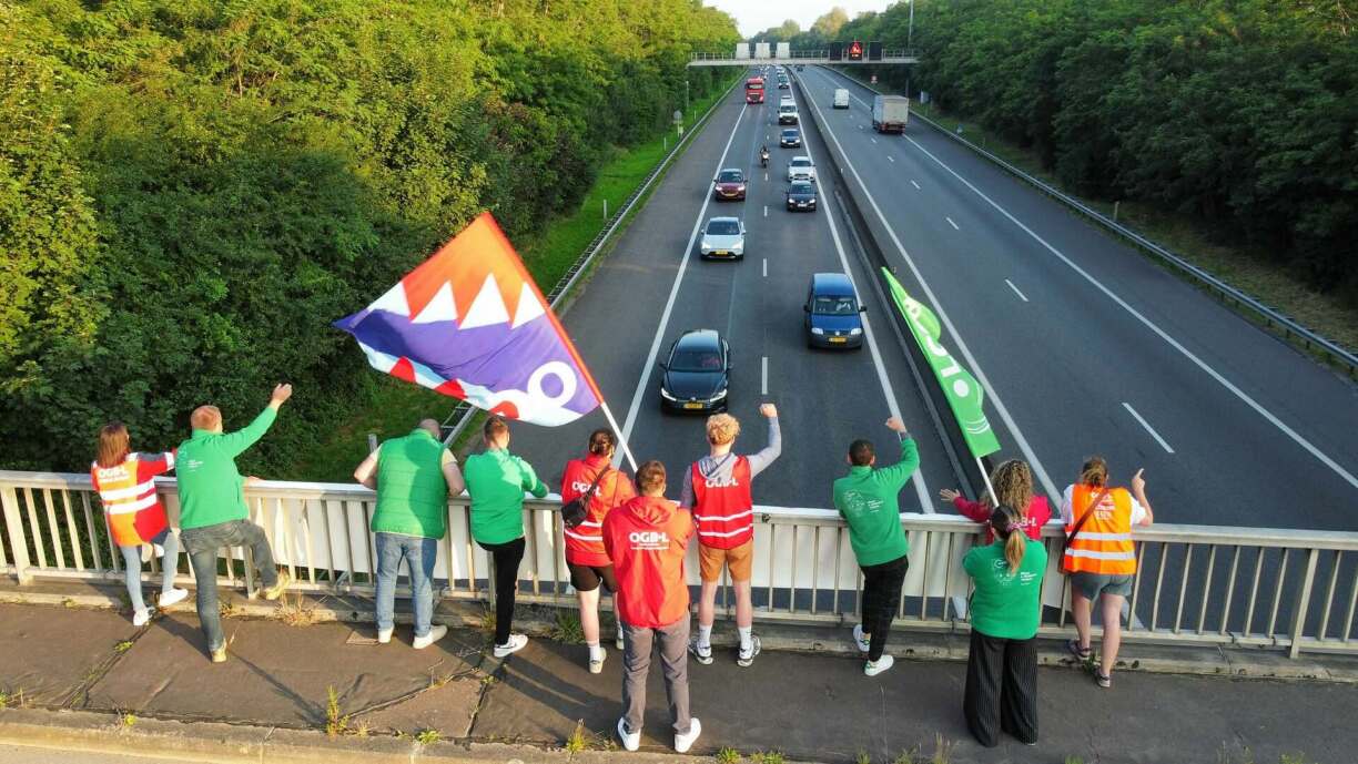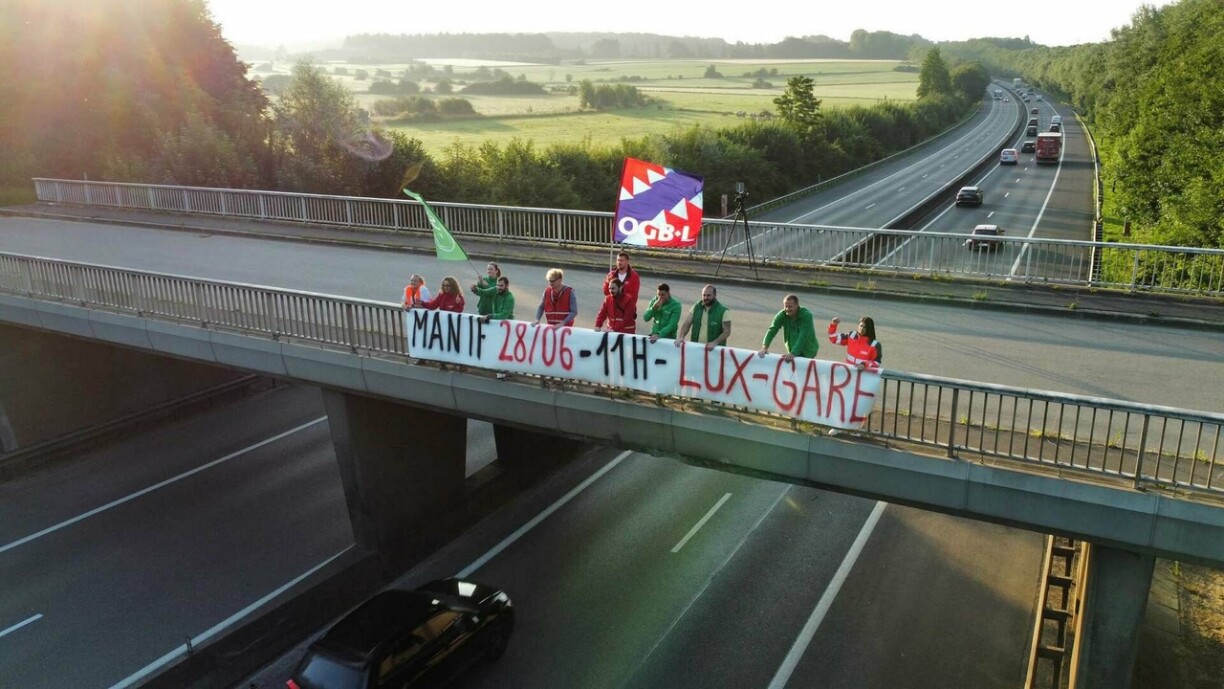 Members of the LCGB and OGBL gathered around Mamer between 6.30am and 8am on Thursday morning to promote the historic demonstration, which is set to take place in Luxembourg City on 28 June.