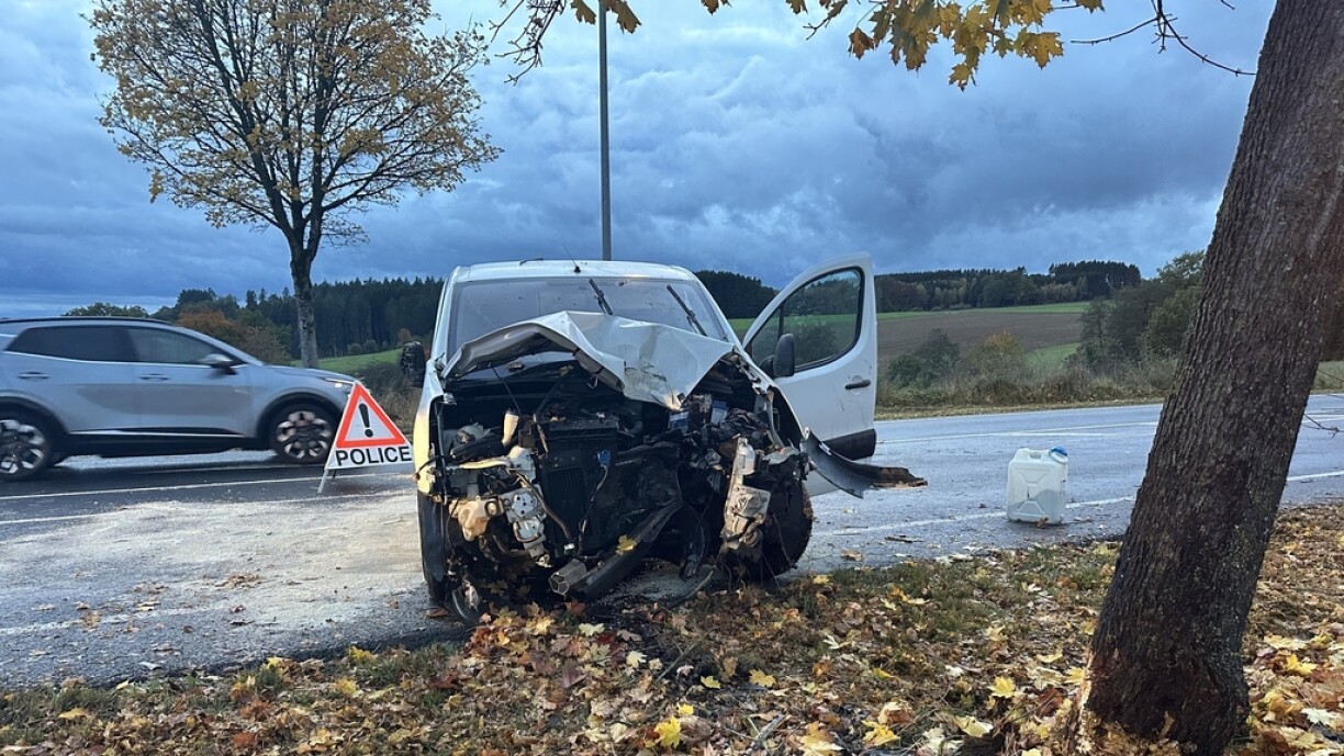 The incident occurred at around 6.10pm between Pommerloch and the Belgian border, where a driver lost control of his van, resulting in a full-frontal collision with a tree.