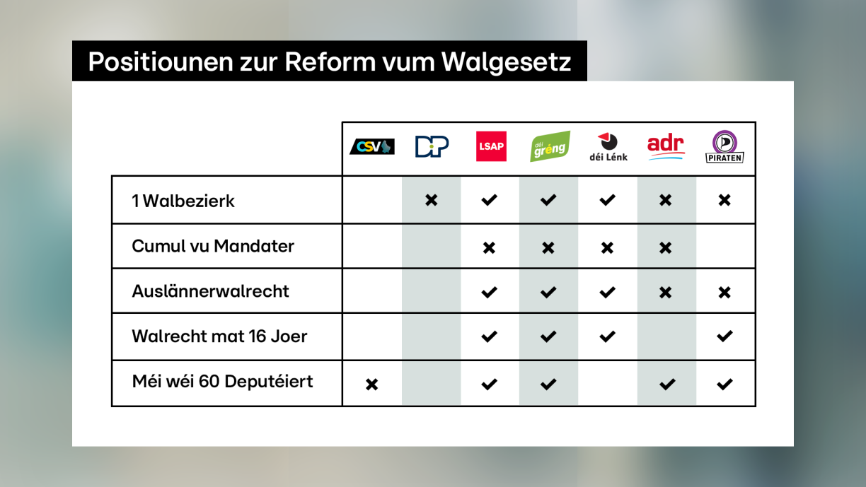 To prevent an influx of smaller parties in the Chamber, both the LSAP and the ADR advocate for introducing an electoral threshold – a minimum percentage of votes required for a party to secure representation in parliament.