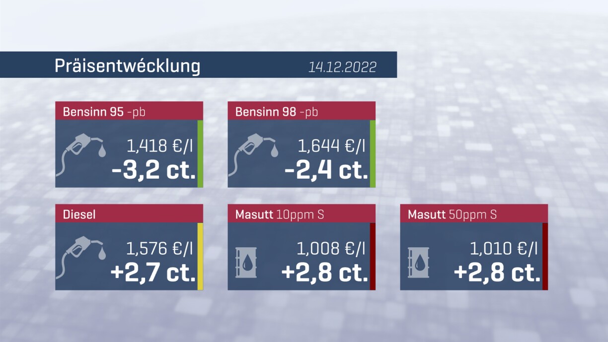 The same is true for 50 ppm heating fuel, which climbed by 2.8 cents to €1.010 per litre. 10 ppm heating fuel costs the same.
