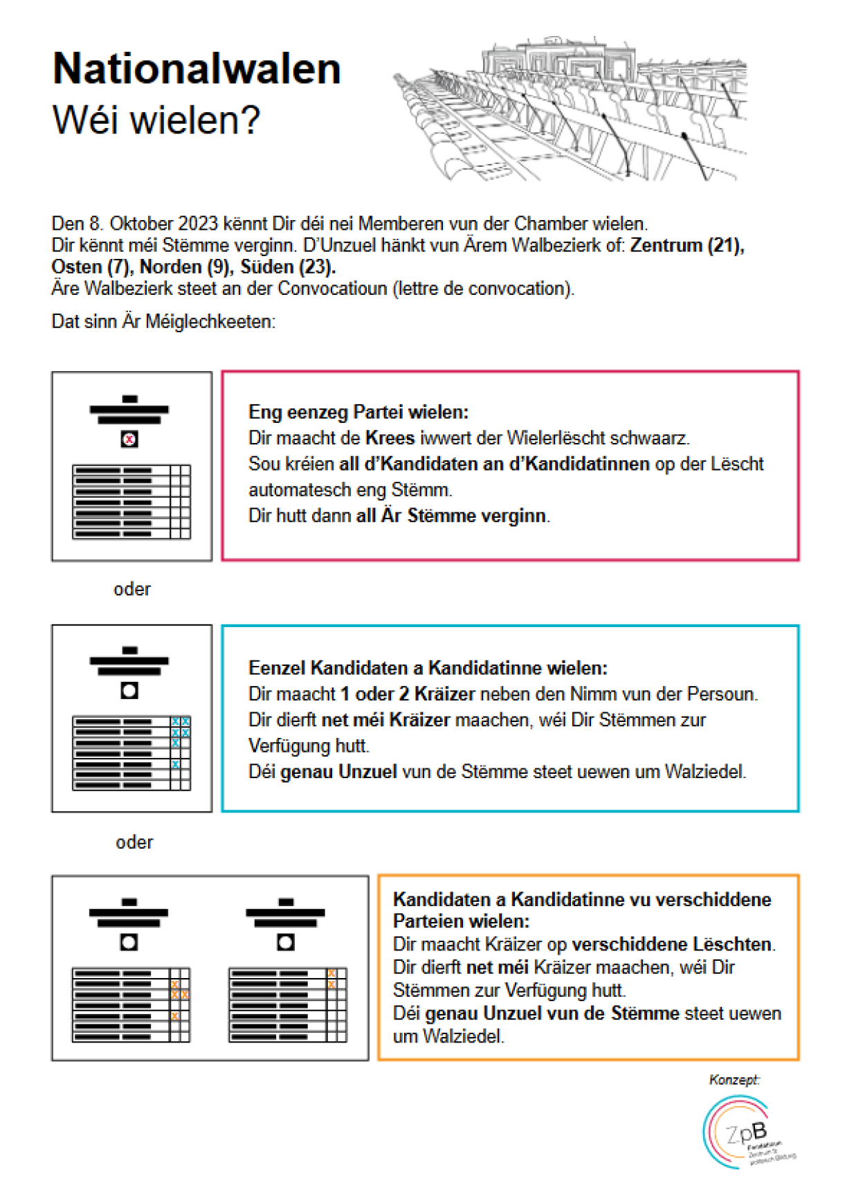 Voters can choose to support an entire list by ticking the top box or vote for individuals across one or several party lists. In the latter case, the total number of votes given must not exceed the number of seats up for grabs in a respective district.