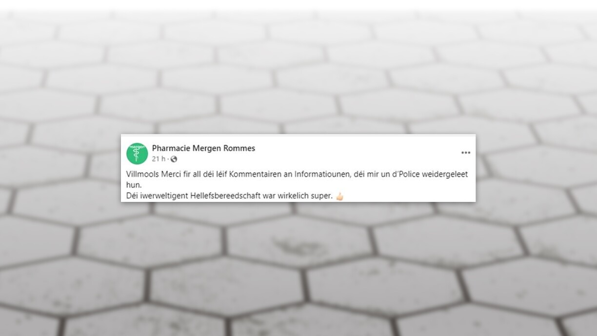 “We don’t want to play sheriff,” the pharmacist stated during a phone conversation with our colleagues from RTL.lu, who wanted to know why the pharmacy had launched the witness appeal on Facebook.
