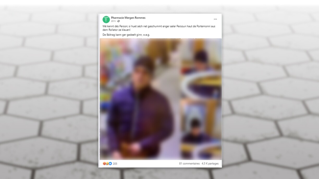 On Wednesday, a pharmacy in northern Luxembourg posted an appeal on Facebook to search for a suspected pickpocket. The post initially included photos of the alleged pickpocket but has since been modified to remove the images. The pictures attached to the post, which was shared over 4,500 times, depicted a man carrying a bag. His face was clearly recognisable on the images. Users in the comments section provided potential leads on the suspect’s identity. The pharmacist informed RTL that all pertinent information had been relayed to the police.