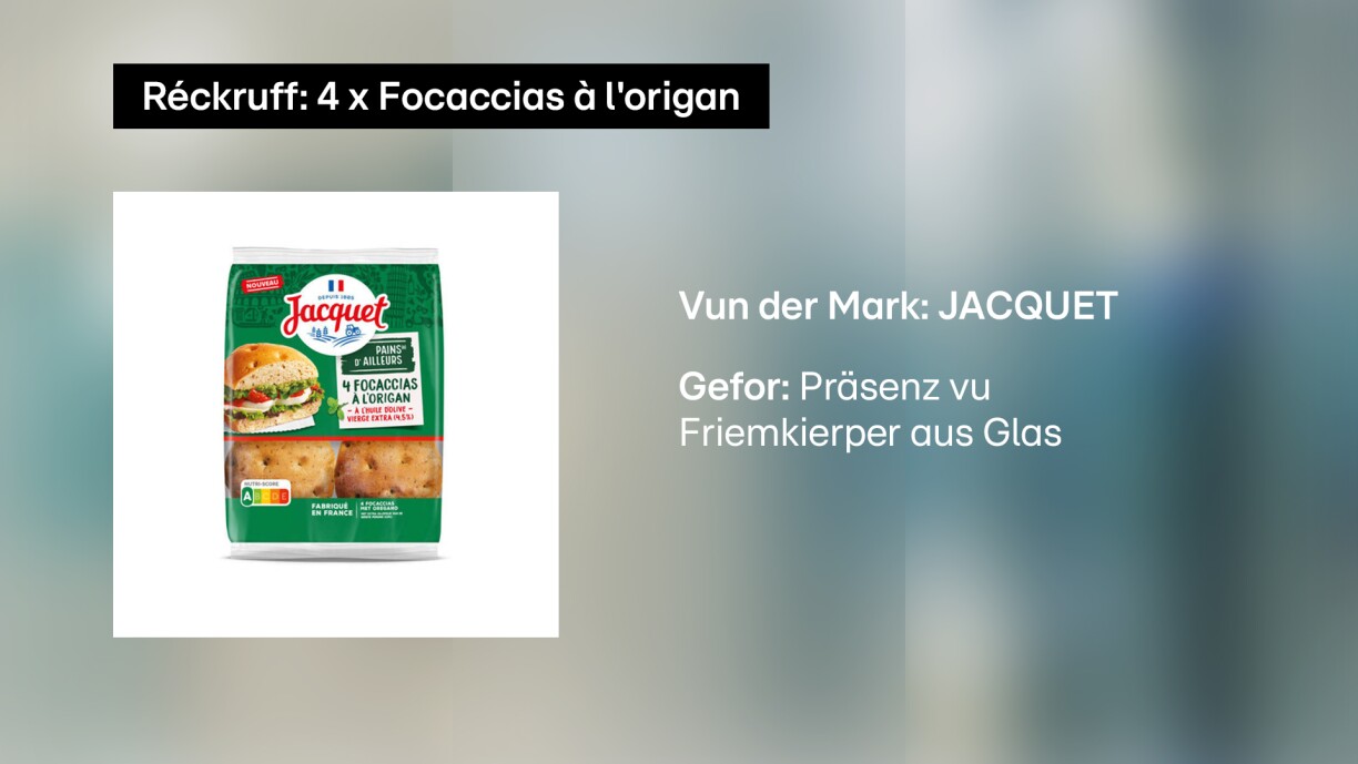 The recall specifically pertains to the 4-pack of focaccias with oregano (260 grammes). Concerns have been raised regarding the potential presence of foreign bodies, particularly glass, within the product.