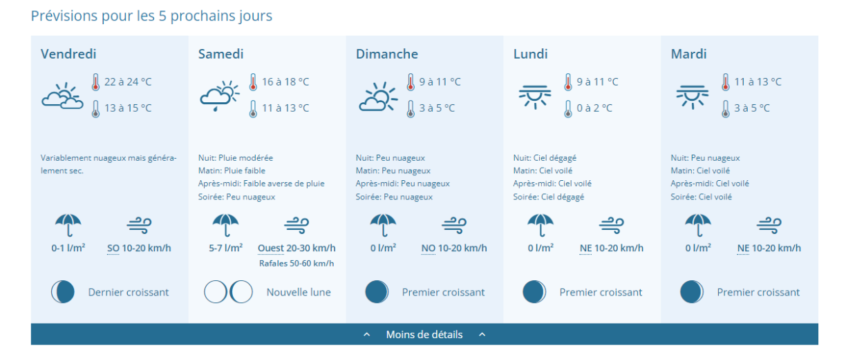 In the French Lorraine region, temperatures will stabilise on Saturday, with afternoon highs not surpassing 14°C. The mornings will be cooler, reaching 5°C on Sunday, and the day will remain brisk, peaking at 12°C. Clear skies and moderate winds are expected.