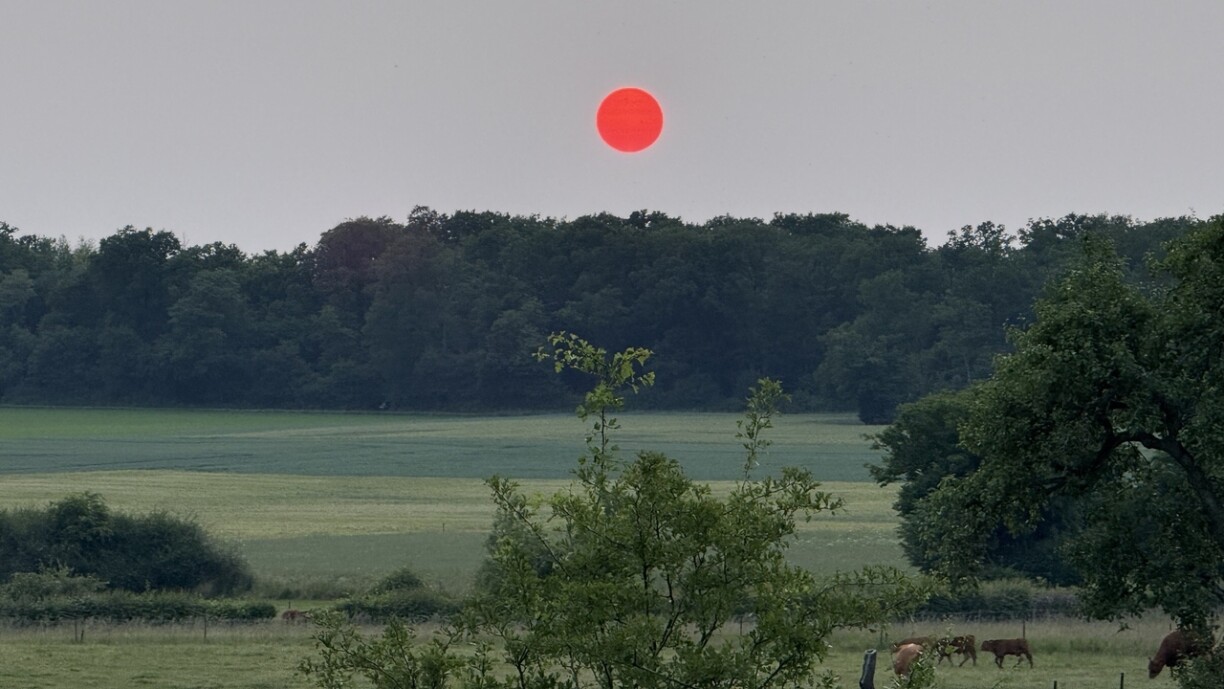 The red hue of the sun was particularly noticeable to many on Tuesday evening. Positioned low on the horizon, the sun showed a distinct red-orange glow.