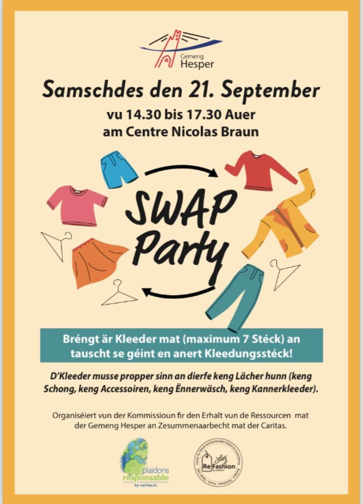 The event is being organised by the Hesperange ‘Reuse Commission’ in collaboration with Lët’z Refashion. This initiative not only promotes sustainable fashion but also provides a wonderful opportunity to update your wardrobe while participating in a community-focused activity.