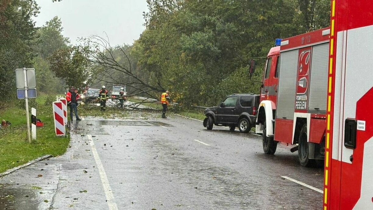 A fallen tree blocked the road between Niederfeulen and Fuussekaul on Saturday, leading to a nearly two-hour complete closure of the stretch.