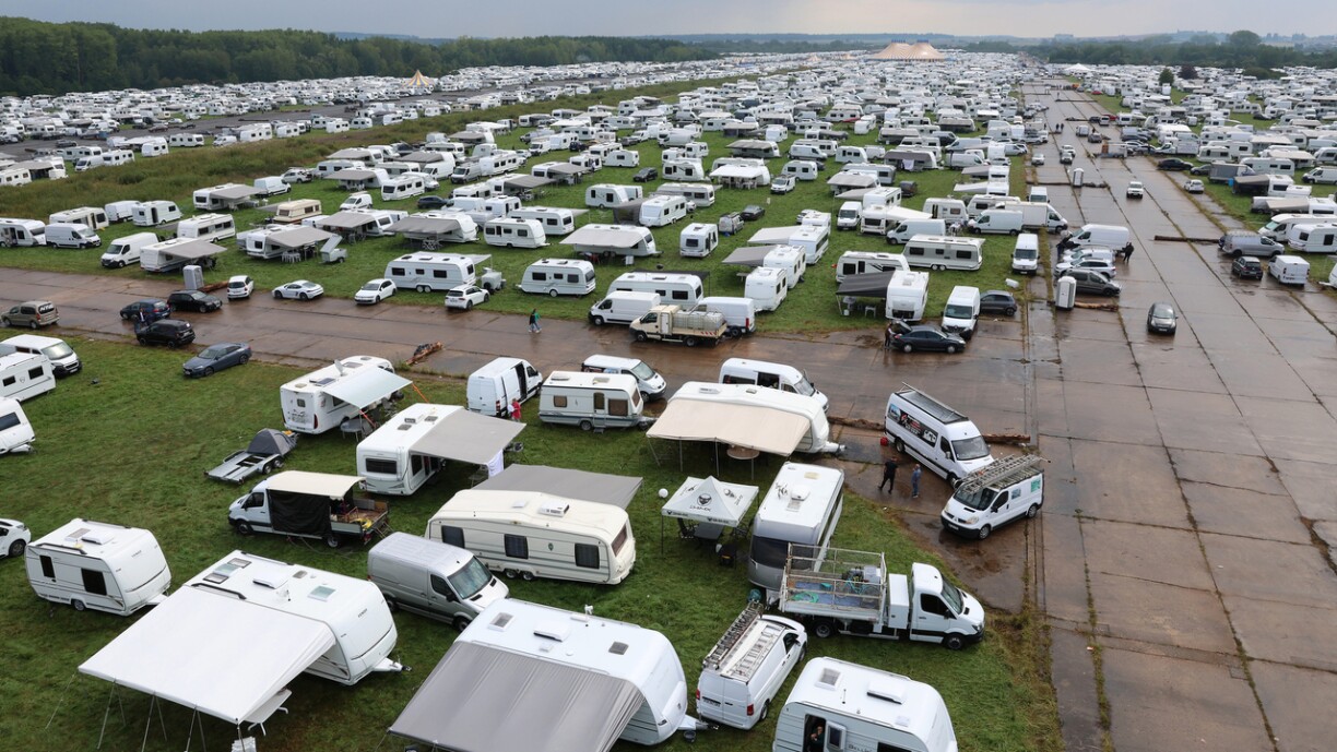 Saturday evening at 6pm, authorities counted 2,417 caravans and camping cars in Grostenquin in the Moselle region in France - 1,578 less than the day before.