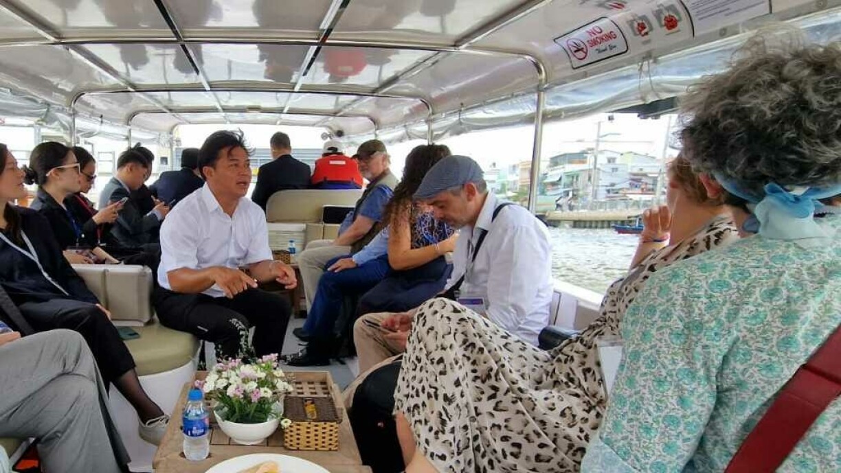 On Friday morning, part of the delegation took a boat ride on the Saigon River. Tourist guide Kha Nguyen explained that smaller factories are responsible for most of the pollution affecting the river since the major companies have invested into becoming more neutral.