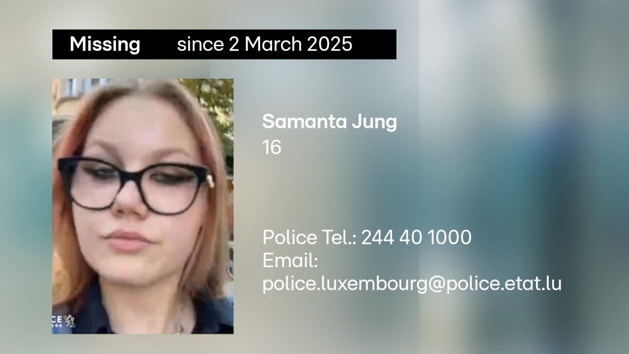 Police are asking anyone who has seen Samanta or has information about her whereabouts to contact them at 244 40 1000 or via email at police.luxembourg@police.etat.lu.