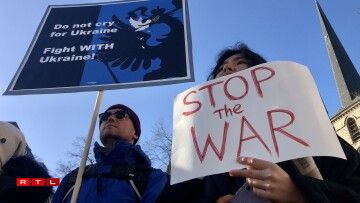 Several hundred people, about 500 according to a witness on the spot, were gathered to support the Ukrainian population.
