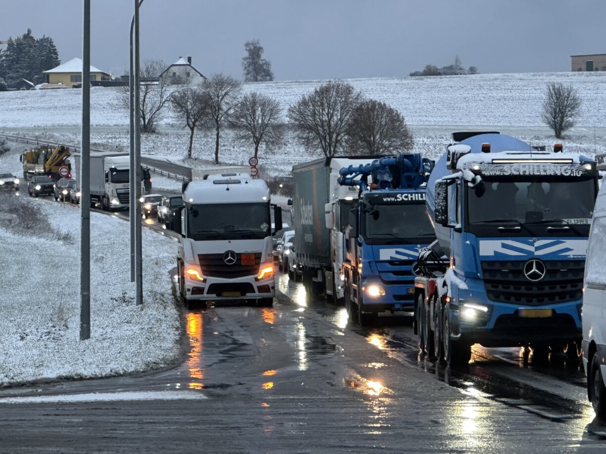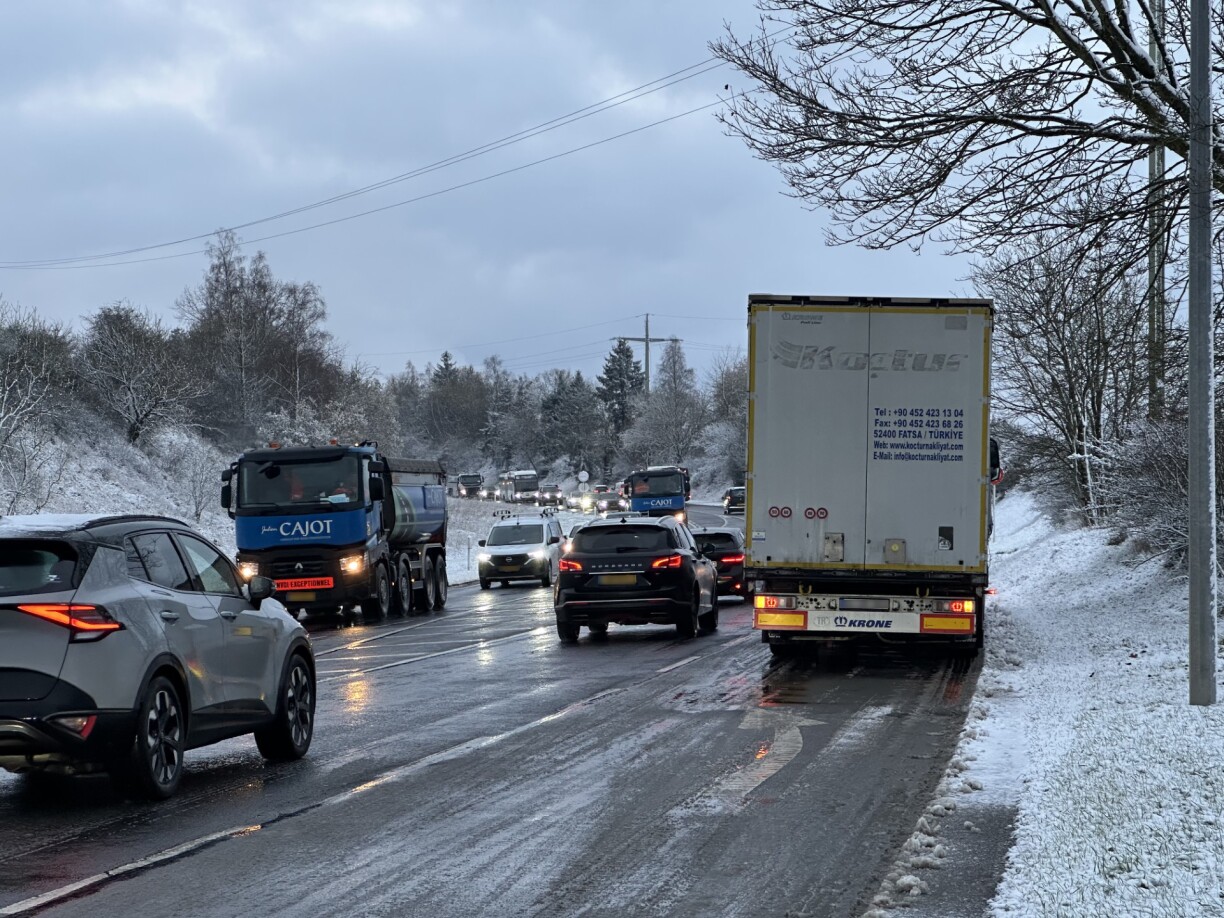 According to initial reports, several trucks were stuck on the road, resulting in a traffic jam of nearly 7 kilometres, mainly heading south.