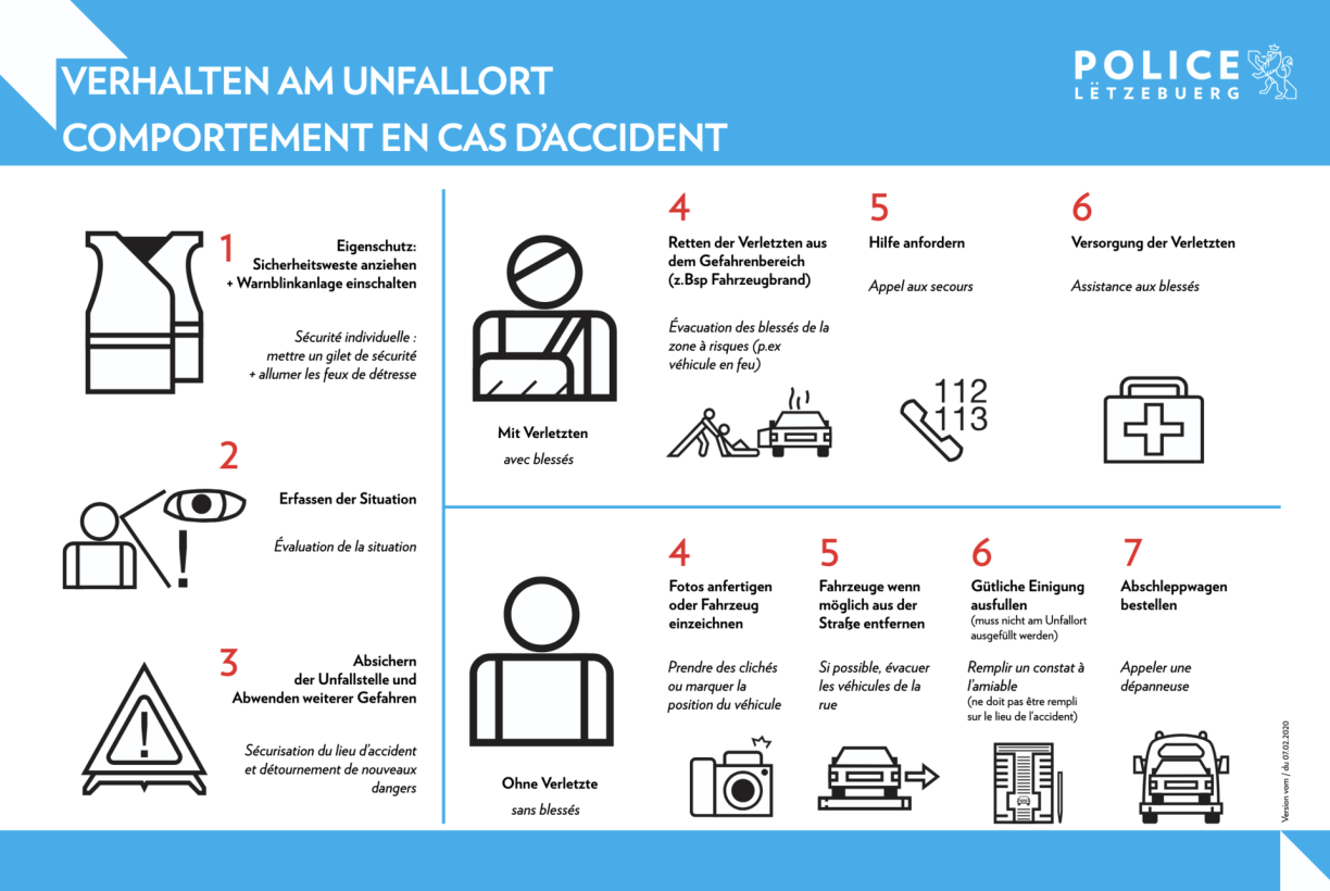Failing to react and ignoring an accident may result in sanctions for “non-assistance to a person in danger”.